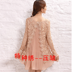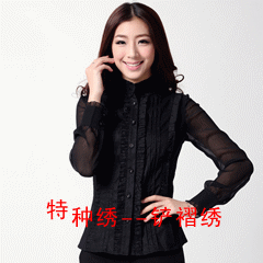 可加工各种特种绣花花样:曲牙特种绣、服装特种绣、对丝绣、晶片特种绣、莲藕特种绣、打揽绣、打条、压皱、精密三角针等特种绣花