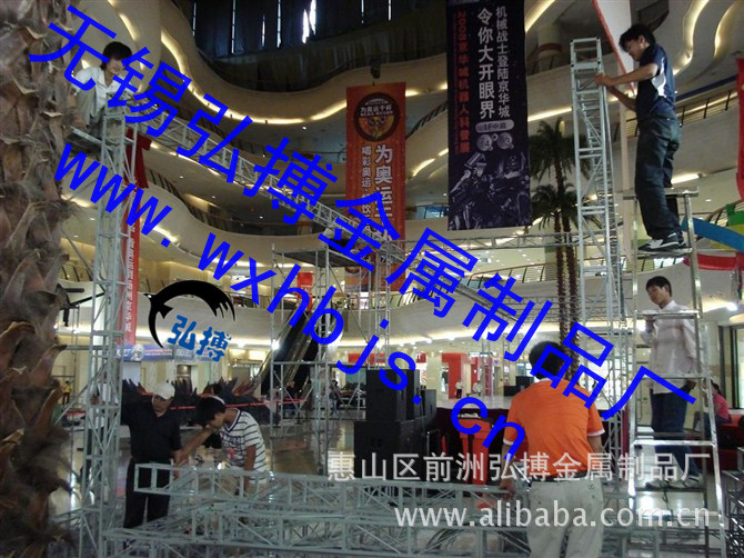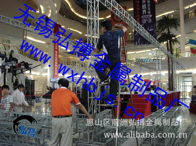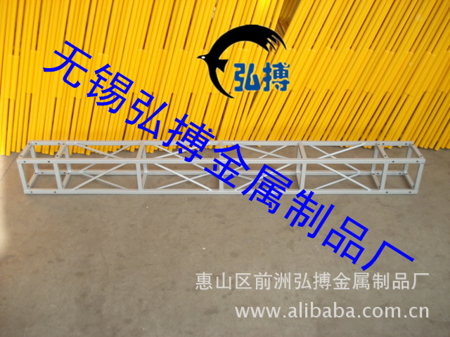 一:钢铁桁架:200mm*200mm,250mm*250mm的方管钢铁桁架,有镀锌,喷漆(红,黑,蓝)喷塑等3种式样,且我公司生产的方管桁架为加强型桁架,自带接头、五面连接,不需要另外配接头,解决了安装繁琐,接头不易损坏等问题,一般20规格桁架为小桁架,安全跨度为8米,25规格桁架安全跨度为12米。