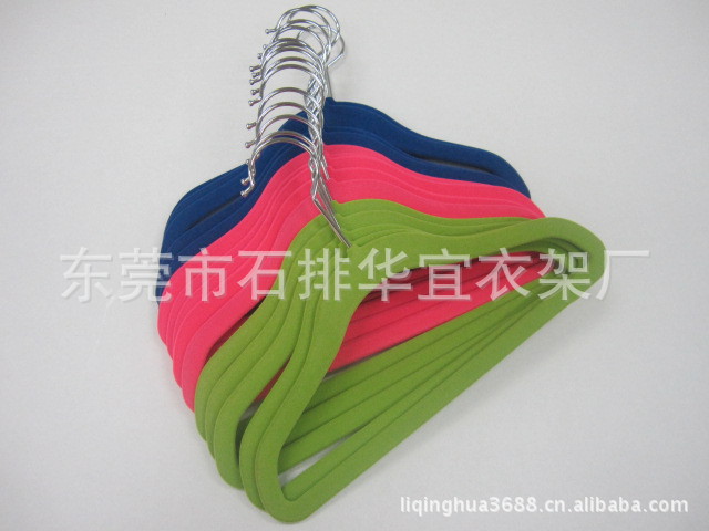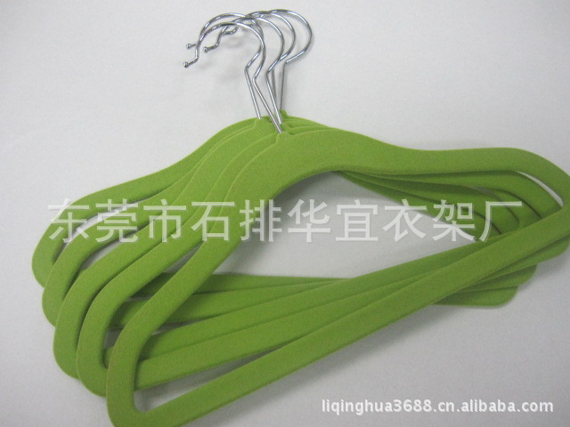 4.防滑性能好,本产品的材质是ABS改性环保料,外层绒毛经静电植绒机植上,再由高温处理,就是这层绒毛象魔术师的手一样有种无形的力量抓住衣服不滑落,有效克服了普通衣架一不小心就滑落到地上的缺陷.