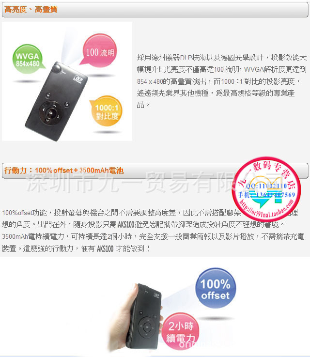采用德州仪器DLP技术,RGB三色光源,亮度100流明,色彩鲜艳、还原度高,对比度强,支持1280*720P高清播放的LED投影机,支持PPT/PDF播放,平且可以通过USB连接电脑直接投影。(不需要接VGA即可实现连接电脑投影功能),同时拥有HDMI高清输入、AV输入,能与其它设备完美连接,支持U 盘直接播放、SD卡的视频图片相关资料。适用于各种场合,适合各种人群的需要。