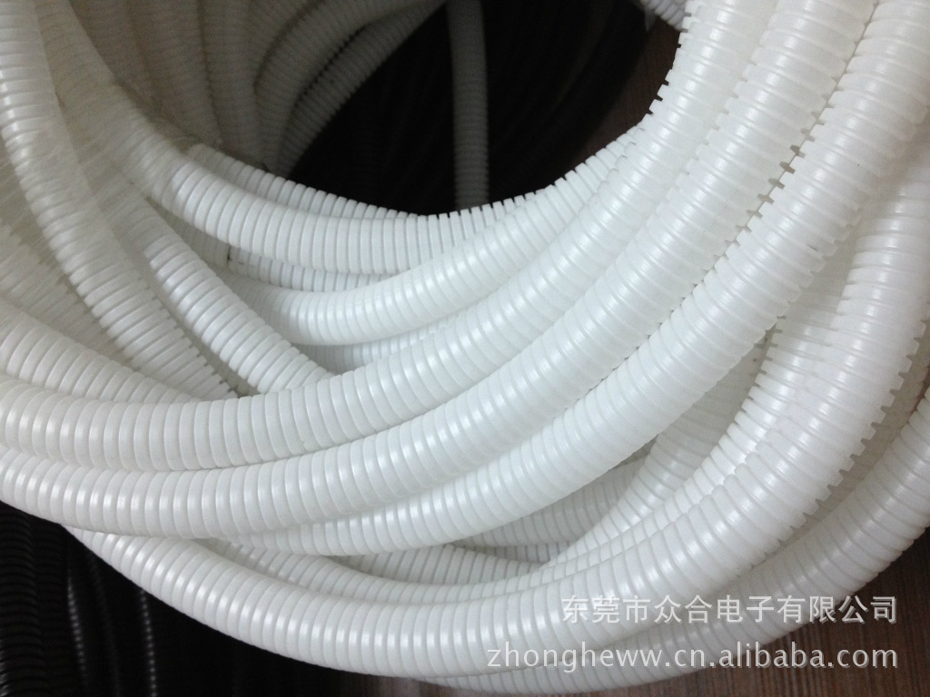 产品材质:PE聚乙烯(Polyethylene)工作温度:-30℃~+100℃短时可达+120℃结构:内部和外表均为波浪型;颜色:黑色,其他颜色可以定做(根据需要可开口)特性:柔韧性好,表面光泽、耐化学腐蚀应用领域:可用于机床机械,电力设备,食品机械,自动化仪,电机马达,保护电缆电线不受外力磨损及绝缘使用方法:将电线电缆插入管内,在配上LNE:SM-G、SM系列软管接头对应的型号使用即可;