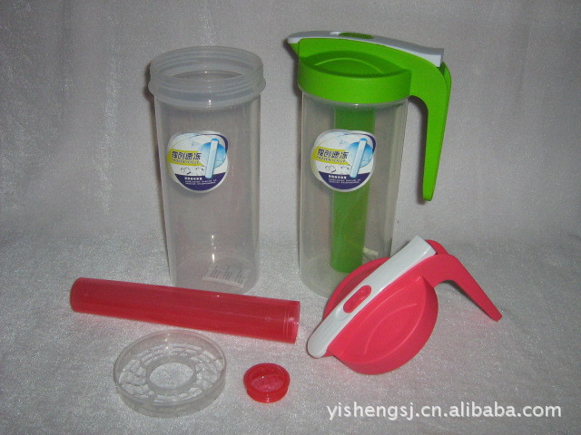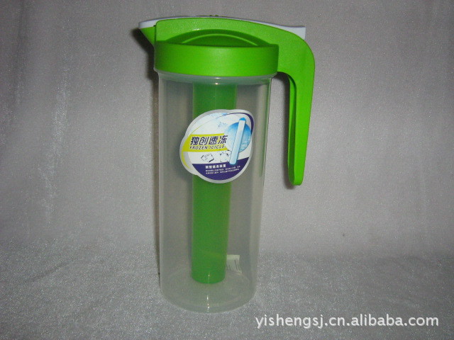 产品特点:旋盖锁扣设计密封性能强,让壶内的饮品既保鲜又隔绝冰箱的异味,锁扣紧锁时可以平放于冰箱内,以节省空间;开合方便,易清洗,无毒无味,可微波加热,可冰箱保鲜。壶内配备速冻棒,可装水放进冰箱冻成冰条,放入水中,可起到保冷作用,实用方便。