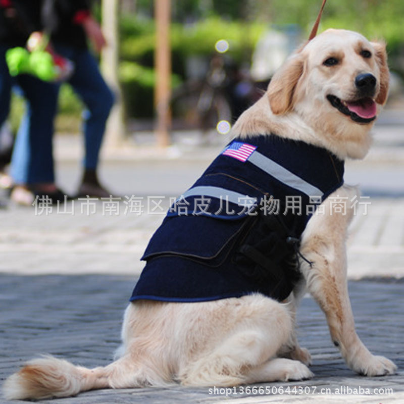 【产品名称】:小额批发 魔术贴设计方便穿脱牛仔宠物大狗衣服工厂