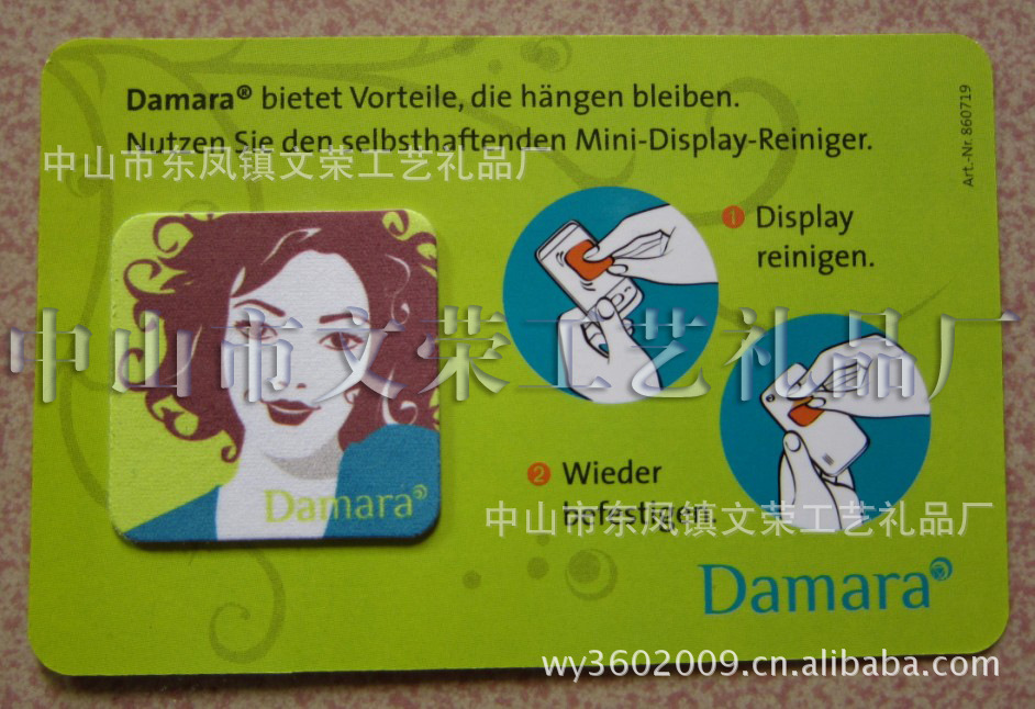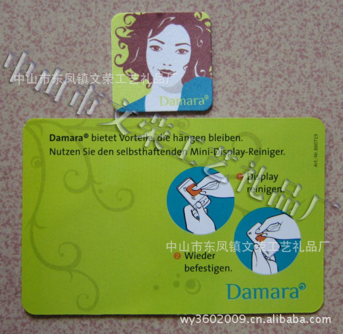 手机清洁贴是一种可以反复粘贴在手机等数码产品的新型清洁产品。 如今,手机在人们日常生活和商务活动中不可或缺,作为第五代媒体的3DS,在树立企业形象和新商品广告上将起到前所未有的宣传效果。本品通过先进的热升华技术,可将企业LOGO或各种精美图片印刷在超细纤维眼镜布上(如示图)。另外TDS数码清洁贴将附带一页印刷精美的纸卡做为包装附帖基材。 纸卡上还可以印刷有关您所要推销的产品或服务的信息,企业形象或联络方式等。贴于手机背面,消费者可以将清洁贴带到任何地方,您的产品或企业形象将可以得到更为广泛的宣传和推广,消费者在每次使用清洁贴的时候,都会对您的馈赠心存感激! v表面的超细纤维构造可以吸附 手迹、皮脂、灰尘等污垢。 v背面的发泡吸盘,采用无毒环保膜,可以在手机等数码产品上重复粘贴。 v贴片表面用热升华技术印制,反复清洗不褪色。 v表面弄脏可以清洗,且不影响背面的吸附效果,可长期使用。 |