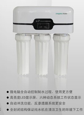 纯水机简介: (制造出来水的质量与知名品牌桶装水质量一样,甚至更好);包括水费、电费、维护费等,每桶水的成本仅0.5元,并且一台家用型纯水机一天可以生产10桶水。所以,您煲汤、煮饭、刷牙、洗脸都可以用纯净水了,再也不用担心成本的问题了。如果是商用则更划算,它将是您理财的好帮手。