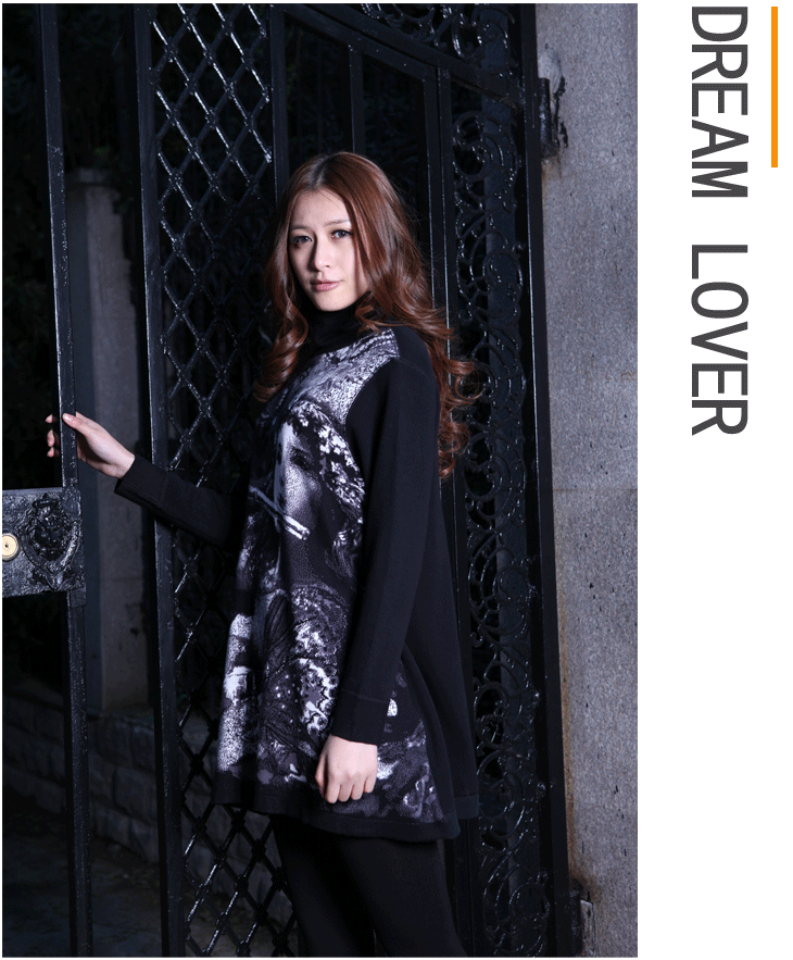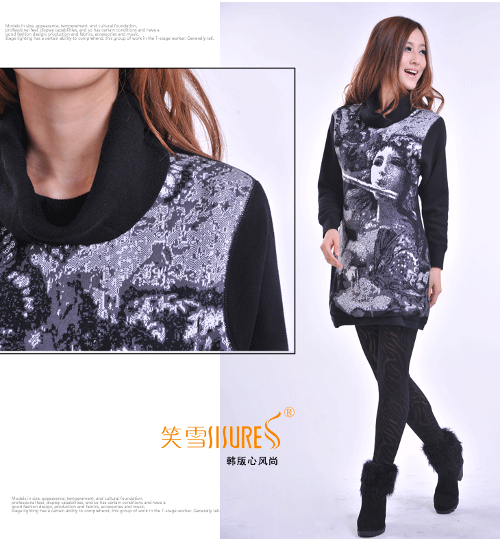 笑雪 女士保暖连衣裙加厚 羊毛加绒加厚连衣裙 少女花修身大翻领