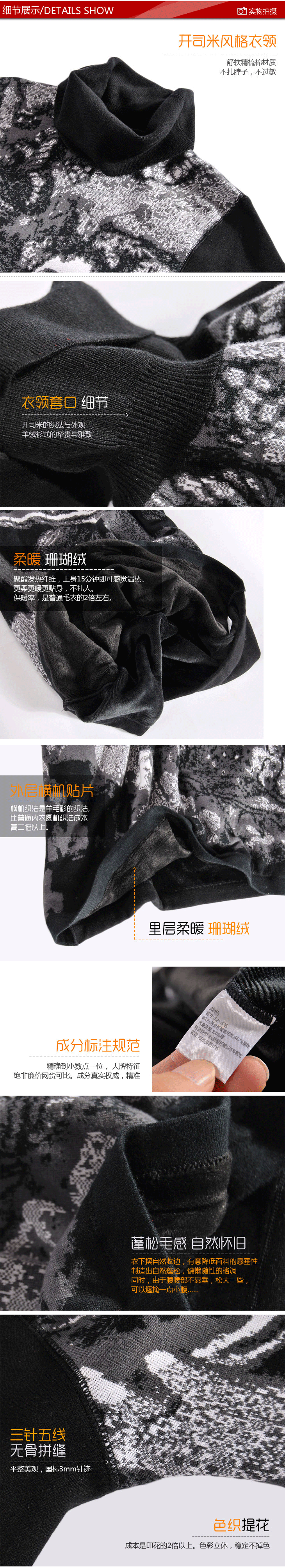 笑雪 羊绒加绒加厚高翻领女士保暖内衣 字母条纹护膝 一套代发