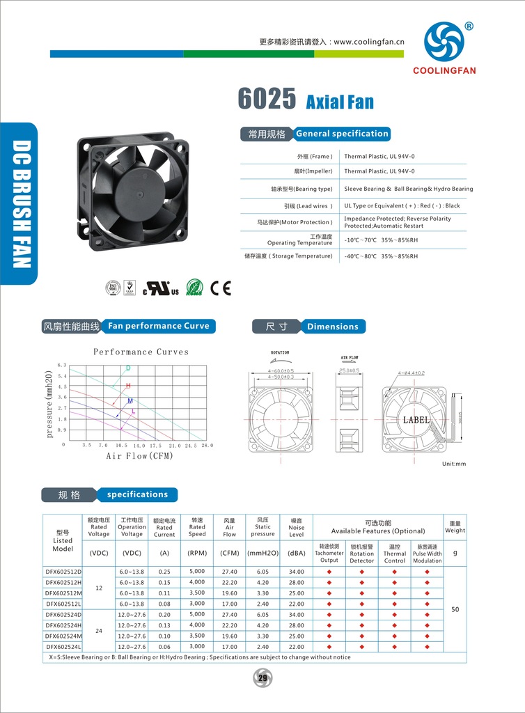 散热风扇 DFB602512H 5V-48V 6025 静音风扇