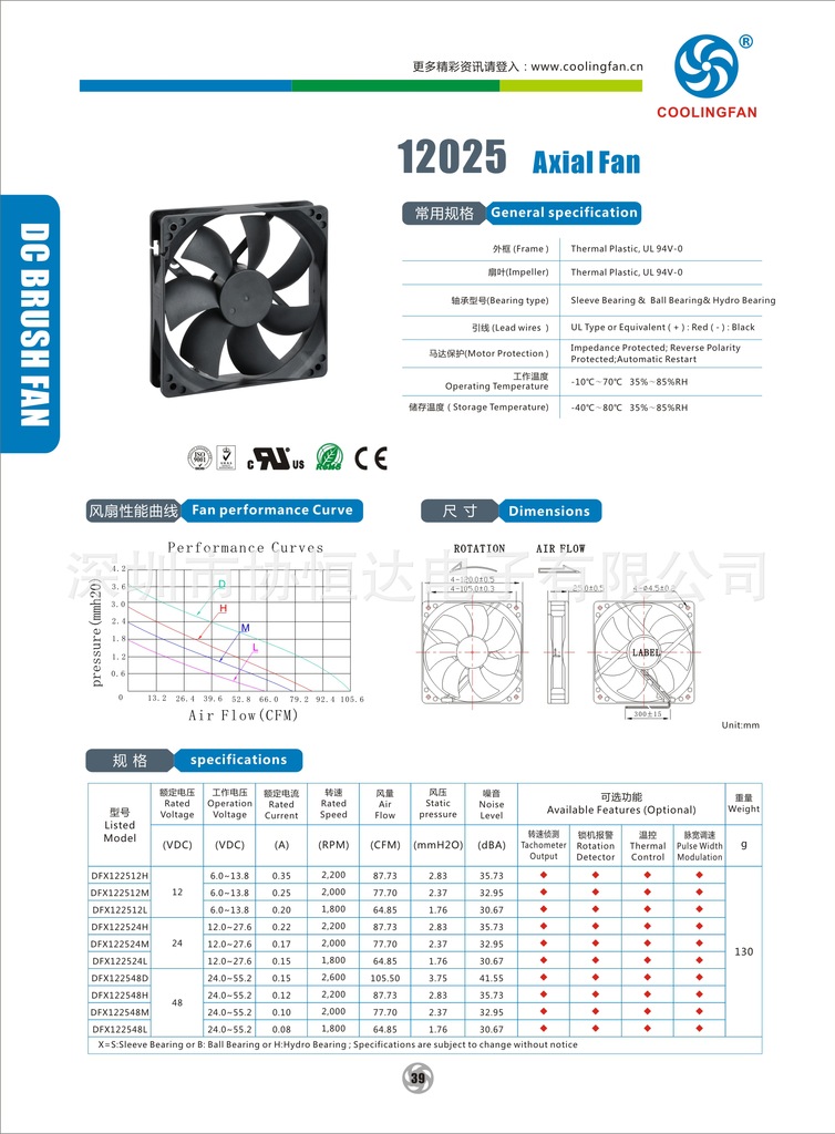 散热风扇 DFB122512H 1225 5-48V 长寿命 低噪音