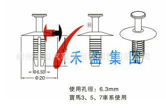 使用方法:先将需要固定的两板状工件钻孔,孔之大小可参考铆钉工作部分直径(需偏小),然后将此铆钉塞入孔内,便可达到固定两板的目的。