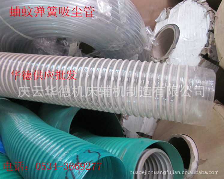★★庆云华德机床辅机制造有限公司专业生产蛐蚊弹簧吸尘管,本产品适用于吸尘设备、通风设备,可用于工具磨床、木工机械、导轨磨床、化工设备吸尘通风等内外有高强度塑料、中间有钢丝支撑,经热压成型,任意弯曲不变形等特点。