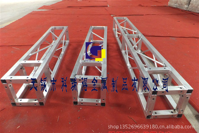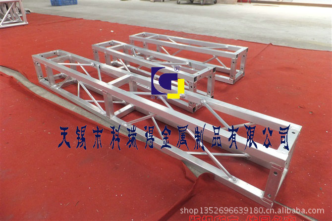 灯光架:一套四柱灯光架包含铝合金桁架(包括横梁和立柱)、反头、方套、铁底座、横担、吊带、吊葫芦、斜撑八个部分。桁架按米计价,其他配件按个计价。不同尺寸的灯光架所用的桁架的规格不同,价格也不同,比如长12米宽10米高8米的灯光架可以用300*300的桁架,长20米宽15米高8米的灯光架需要用400*600的灯光架。不同规格的桁架,配件的价格也是不一样的。如果灯光架加做人字顶,则常规的桁架按米计价,定制的桁架及接头、扣件等均按个报价,价格需按规格具体核算。