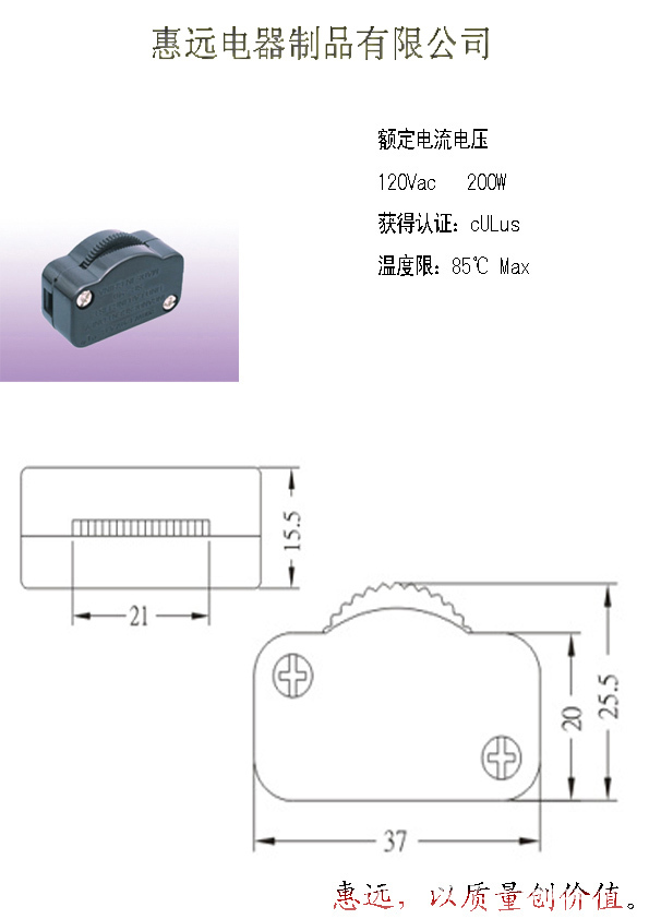 惠远电器制品有限公司是电子电器开关、灯头灯座、接线端子台和插头插座的专业制造商。自2002年于广东佛山成立制造配件事业部以来,公司始终坚持立诚信、重质量、共发展的理念发展事业。