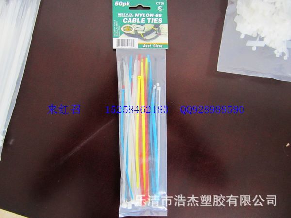 尼龙扎带也称为:扎带、扎线、束线带、扎线带尼龙扎带分为:自锁式尼龙扎带、标牌尼龙扎带、活扣尼龙扎带、防拆(铅封)尼龙扎带、固定头尼龙扎带、标牌尼龙扎带、插销(飞机头)尼龙扎带、珠孔尼龙扎带、鱼骨尼龙扎带、耐候尼龙扎带等。 尼龙扎带,顾名思意为捆扎东西的带子,设计有止退功能(活扣式除外),只能越扎越紧,也有可拆卸的扎线带(活扣)。 尼龙扎带采用UL认可尼龙66(Nylon 66)材料注塑制成,防火等级94V-2,具有良好的耐酸、腐蚀、绝缘性,不易老化、承受力强。操作温度为-20℃到+80℃(普通尼龙66)。 广泛应用于电子厂、捆扎电视机、电脑等内部连接线,灯饰、电机、电子玩具等产品内线路的固定,机械设备油路管道的固定,船舶上电缆线路的固.,自行车整车包装或捆绑其他物体,也可用于农业、园艺、手工艺品等捆扎物品。该产品具有绑扎快速、绝缘性好、自锁禁固、使用方便等特点 尼龙扎带由于产品的特殊性(薄壁,产品注塑流程比较大),其模具、注塑工艺和材料都相当讲究,一般的新厂家都需要很长的摸索过程才能生产出合格的产品。