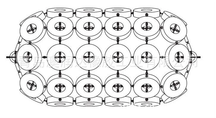 (3)网套上的轮胎可使护舷与船体间能间隔开足够大的空间,从而保护护舷不受磨损,延长使用寿命。