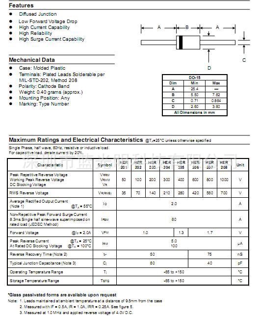 厂家特价直销超快恢复二极管HER202 封装DO-15