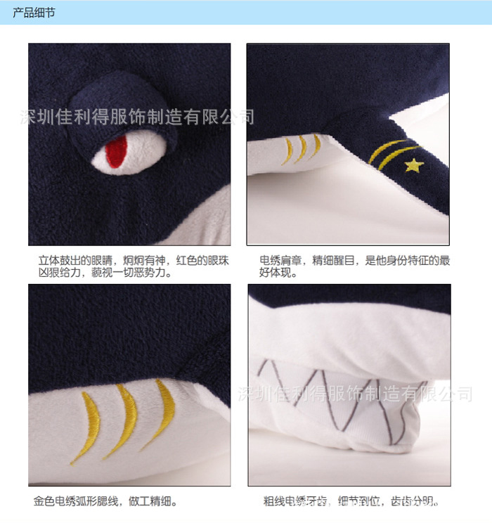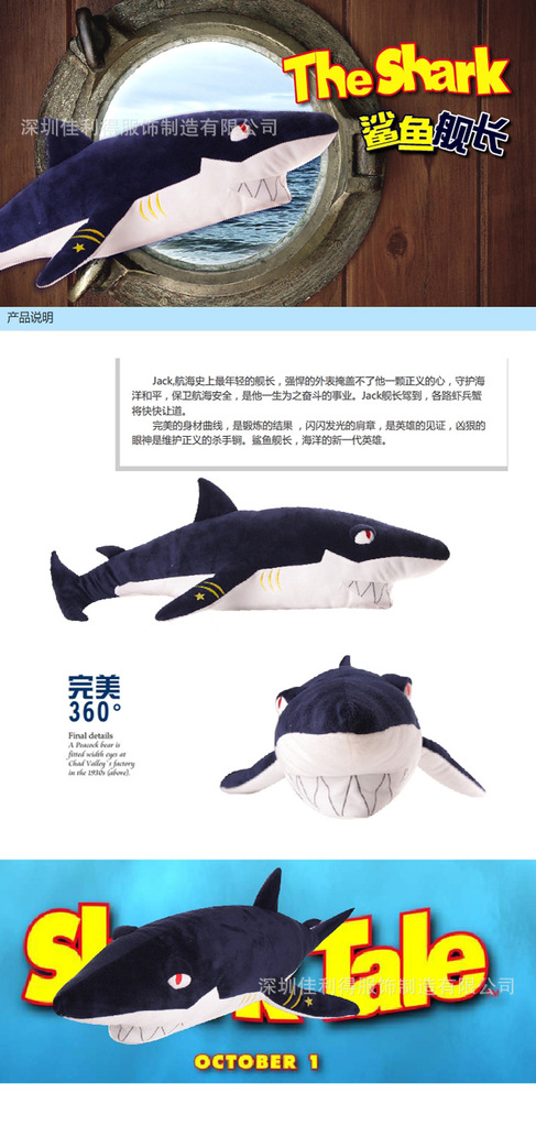 【产品名称】:毛绒海洋家族毛绒玩具,鲨鱼船长,80cm鲨鱼公仔