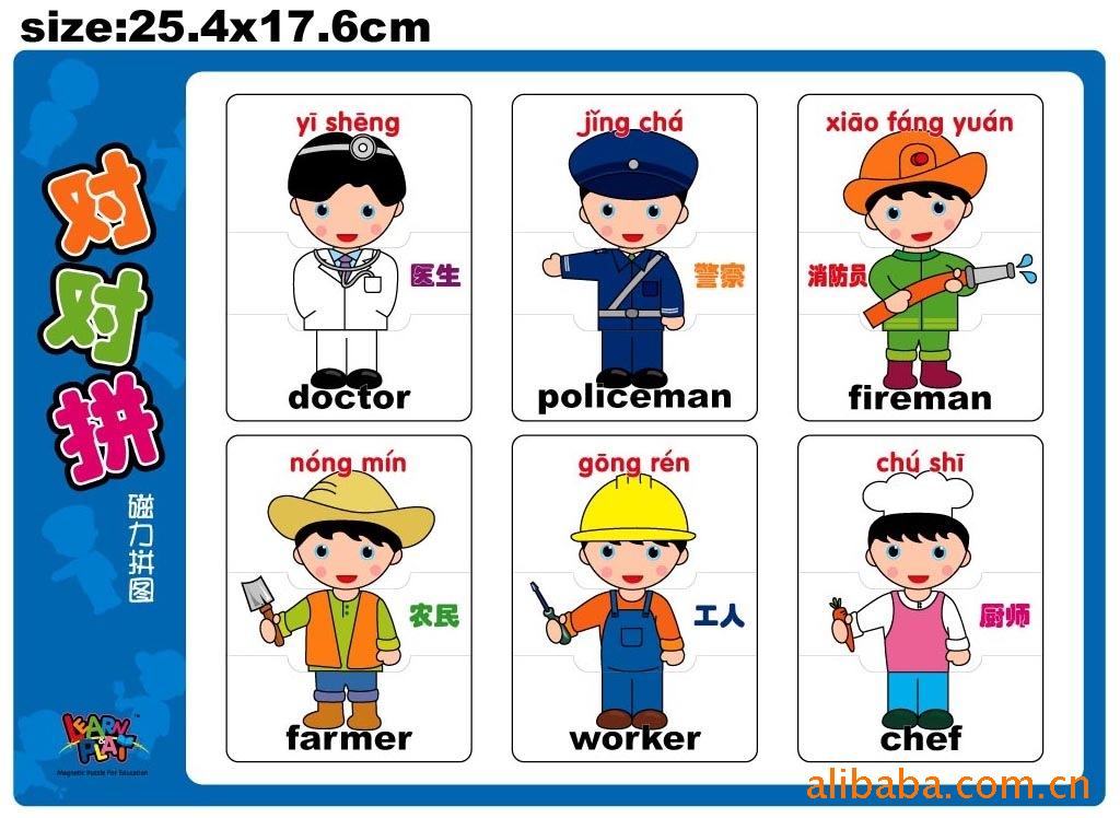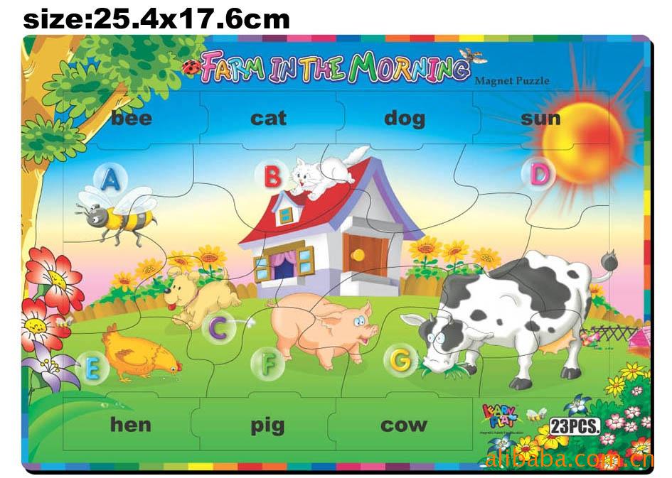 7)磁性拼图(纸板拼图):采用下面软胶磁铁(或纸板 灰板纸)+上面铜版纸四色印刷裱光膜,中间冲切设计需要的拼图小片来制作而成。