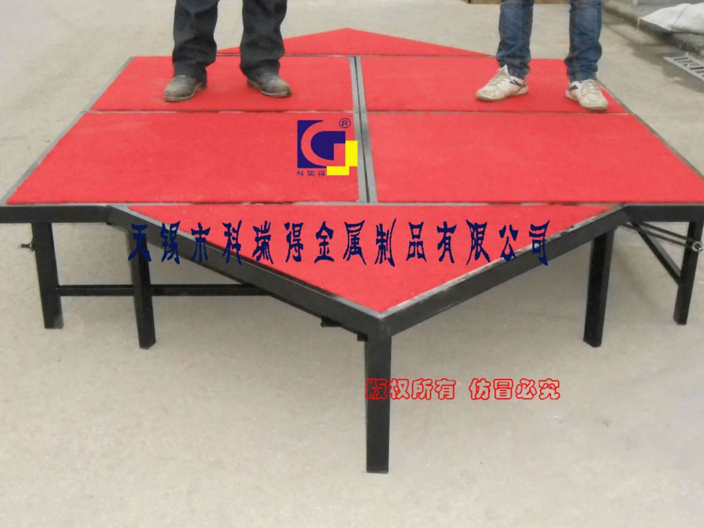 (小舞台)婚庆舞台专为小型舞台设计而生的一款新型小折叠舞台,规格是1.22*1.22,各种规格均可定做,1*1 1.6*1.6 ,0.6*0.6 1.2*1.2 此款折叠舞台特点:方便快捷,摆放不占位置,价格便宜,款式新颖,结构稳定美观,目前应用广泛,价格优惠!预定数量多价格可以申请优惠哦!舞台高度常规为:30-40之间也可以根据要求定做调节高度,舞台表面铺有红色5M毫米地毯,包边采用钢铁型材,美观大方。目前此款舞台受到全国各地婚庆行业的热捧,鉴于规格小,折叠快速,方便灵活。稳定性非常稳固等特点,性价格极高,价格按块(张)计算。比常规大型拼装舞台价格上大大降低了成本,运输方便,搭建速度,折叠舞台原理非常简单,立柱中间有折叠腿为弹性伸缩管,打开伸缩管装上销子既可使用,整个结构完美大方,质量上乘,完成演出后折叠腿部仅需要取下销子腿部自然对折入内,具体参数请详询公司销售!欢迎您的选购!目前公司更多新的产品正在更新中,请继续关注我们公司官方网站和诚信阿里巴巴和淘宝网。我们竭诚为您做到更好!
