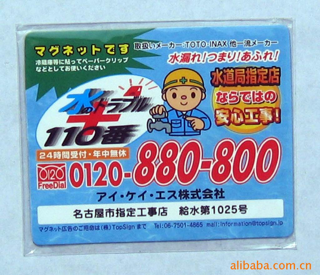 橡胶磁铁+彩色印刷纸覆光膜或哑膜,可按照客户的要求制作生产出不同形状,大小及厚度,价格优惠,是各企业促销活动之理想选择。