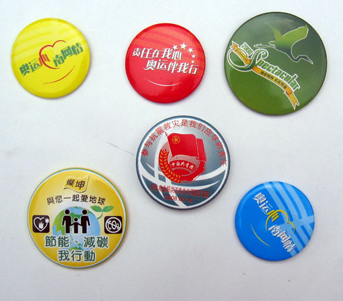 11)玻璃冰箱贴:采用下面软胶磁铁+上面铜版纸彩色印刷+半圆玻璃窗腹膜制作而成