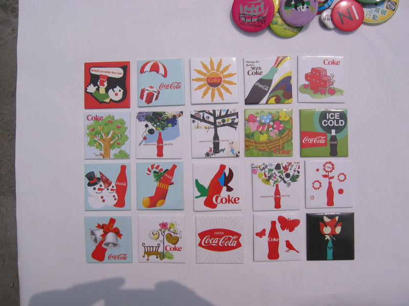 9)马口铁冰箱贴:采用四色印刷包纸工艺+胶磁片制作而成。