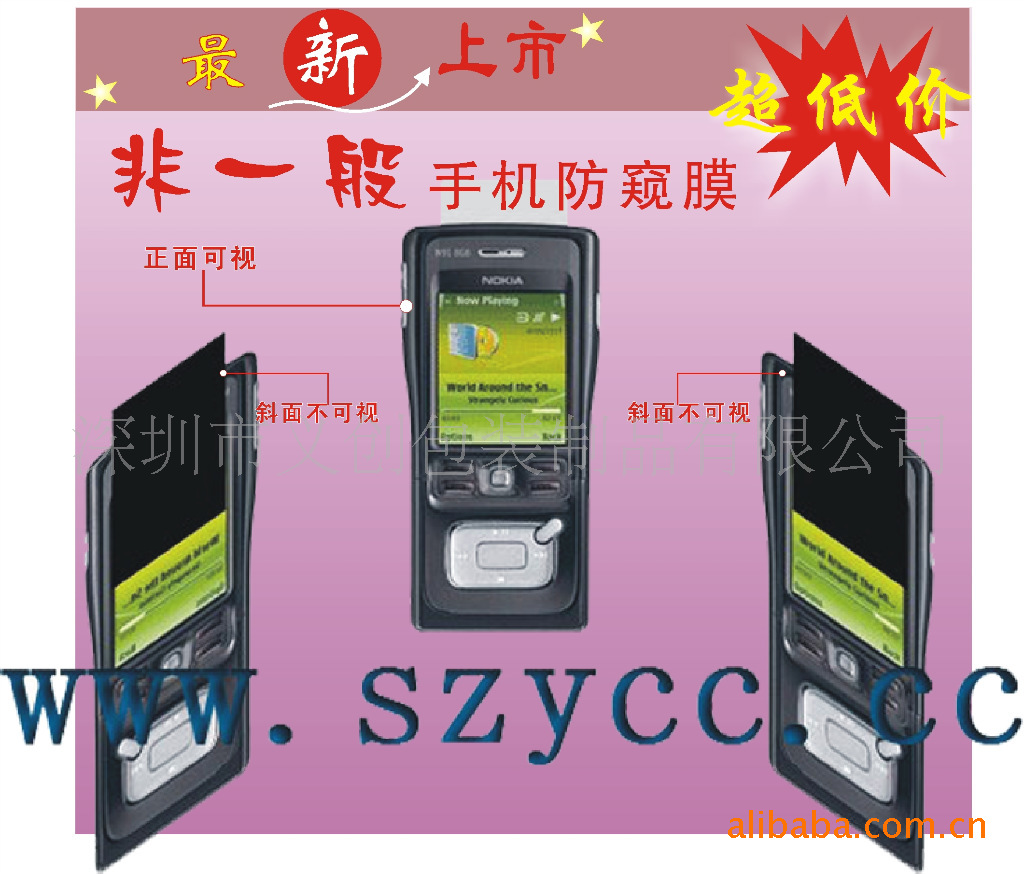 五、安装了防窥贴的MP4、PDA掌上电脑、手机等,使用者只有从正面60度以内的视角阅读屏幕上的资料,才不会使显示屏上的图象模糊,日后在公共场合用它收发亲密信息、查看移动银行帐号、上网看美男女图片、性感影片,再也不用担心旁人偷看了,慢慢的享受去吧!任何人在两侧只能看到漆黑画面,在最大程度上保护了商业机密及个人隐私;防止反光眩目、可以有效保护你的眼睛,降低电磁辐射,还你健康环保;防止屏幕刮花;本防窥保护贴外表层材质采用超耐磨防刮涂层处理(铅笔硬度4H-5H),可以有效防止屏幕污垢、指纹及尘埃。可按客户要求丝印、烫金、镭射LOOGO图案。