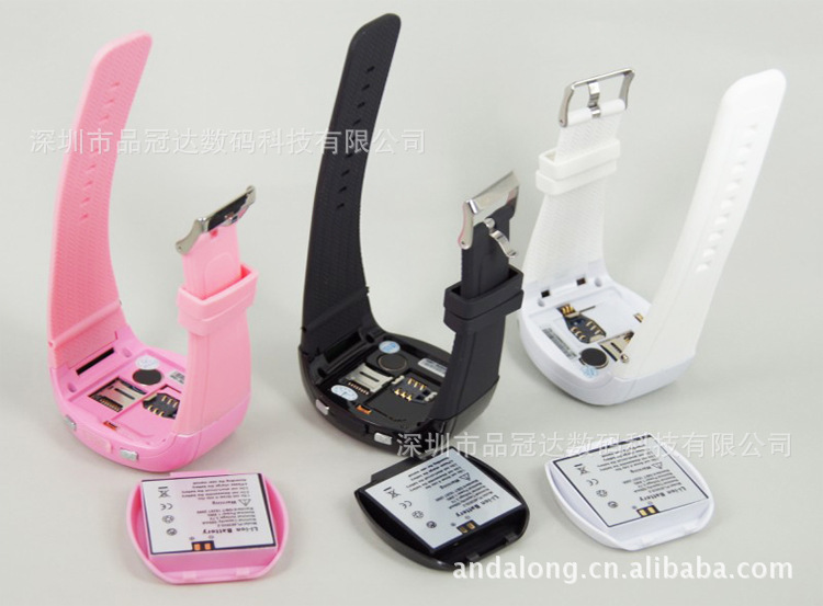 | 产品参数 | 1:支持四频段网络连接GSM850,900/1800/1900 MHz(GPRS) 2:130万高清拍照 3:纯屏设计,纯屏触摸 高清屏 4:1.54寸纯屏显示 分辨率达到240X240 5:绚丽的UI、时尚手表可以换不同的表带颜色 6:支持支持MP3音乐播放,3GP/MPEG4格式的视频播放 7:支持的T-Flash卡,最大支持8G 8:支持手写 触摸屏功能 9:娱乐摄像、短片录制及录音功能 10:支持三种通话模式,免提,有线耳机及无线蓝牙 11:多样色彩搭配,时尚炫彩个性 12:支持多国语言 13:支持FM收音功能 | 产品功能 | 1.摄像 2.MP3音乐播放 3.MP4视屏播放 4.手写触屏 5.蓝牙 6.FM收音 7.GPRS |