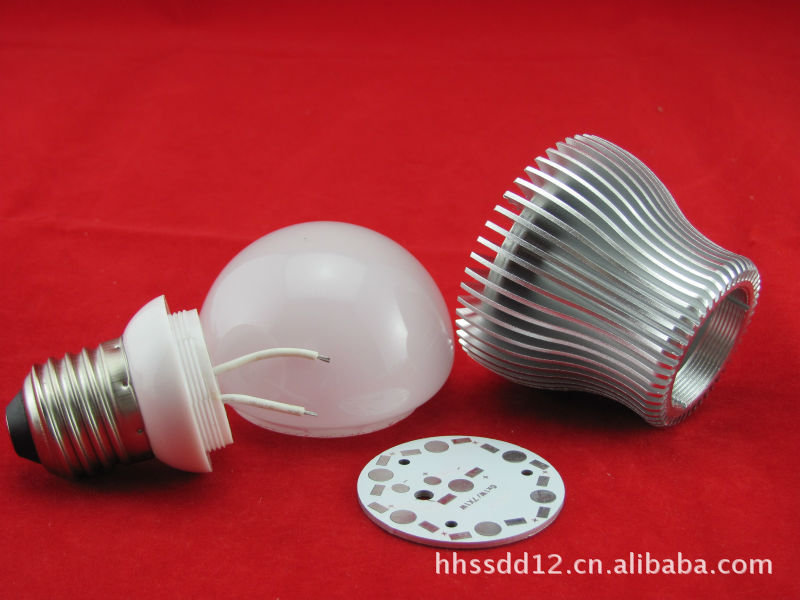 所含部件:灯头+铝合金散热器+玻璃灯罩+铝基板+螺丝