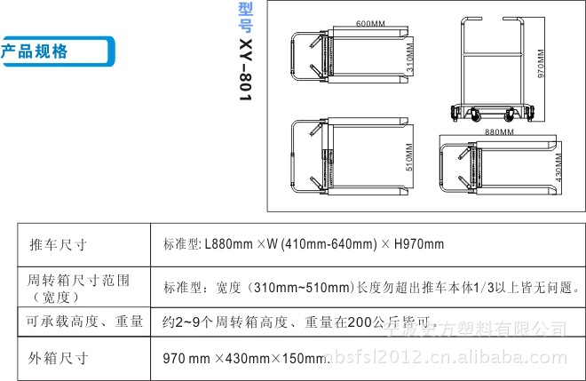 周转箱尺寸范围 (mm)(宽度) | 标淮型:宽度(310~510) 加长型:宽度(310~710) |