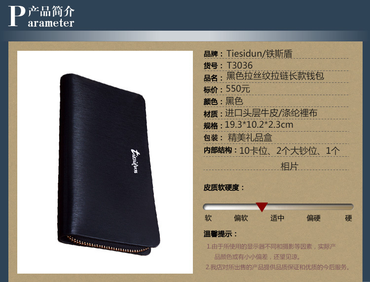 铁斯盾淘宝爆款品牌包包 时尚创意 三折男士真皮钱包广州皮具批发
