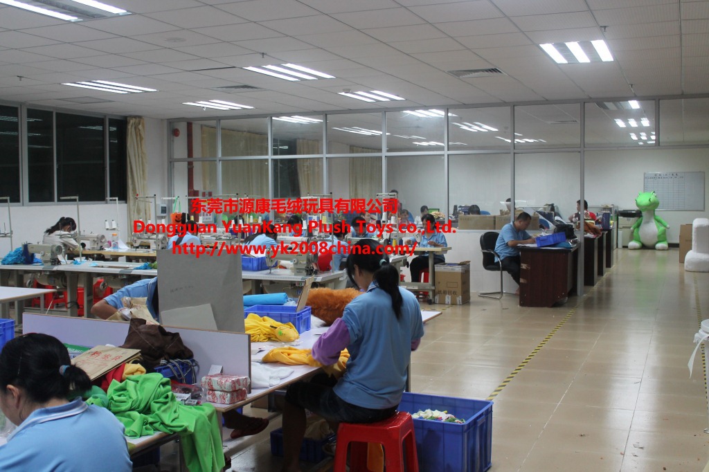 源康玩具厂创建于2002年,主要是以是自己生产为主。厂房现有3000平方。工厂共有300多人,8年左右的熟手车位/手工250多人,专业生产内/外销长/短填充毛绒玩具。产品保证质量,价格合理,本厂拥有设计开发技术人才多名,管理人员具有10年以上良好的素质的管理经验。工厂材料经过各种质量检测机构可达到环保要求。生产设备齐全先进,做工精细,交货准时。