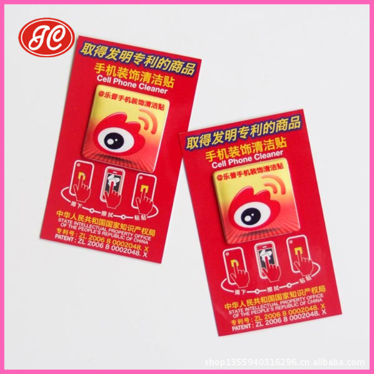 超细纤维手机贴可擦拭各类玻璃、镀镆、树脂镜片、镜头的擦拭,还可用于各类珠宝、激光唱片、录音、录像磁头、电视机屏幕等。区别于传统烫印,它通过高温升华,将颜料渗透到超细纤维当中,使其染色。所以绝不会伤害其擦拭表面。