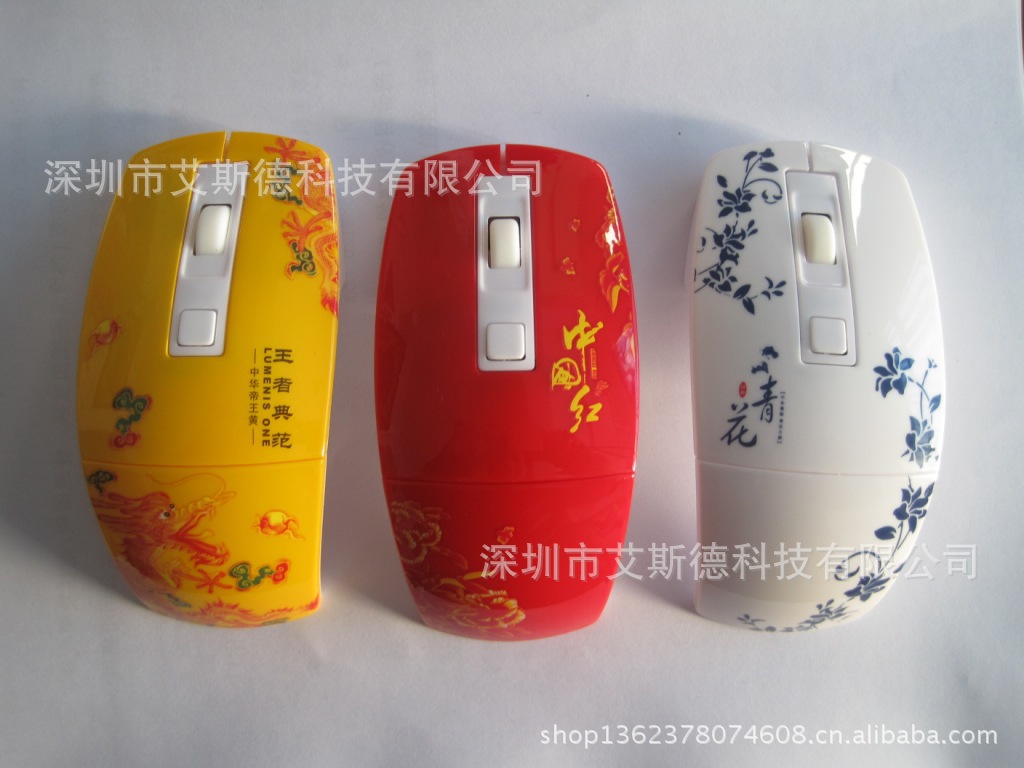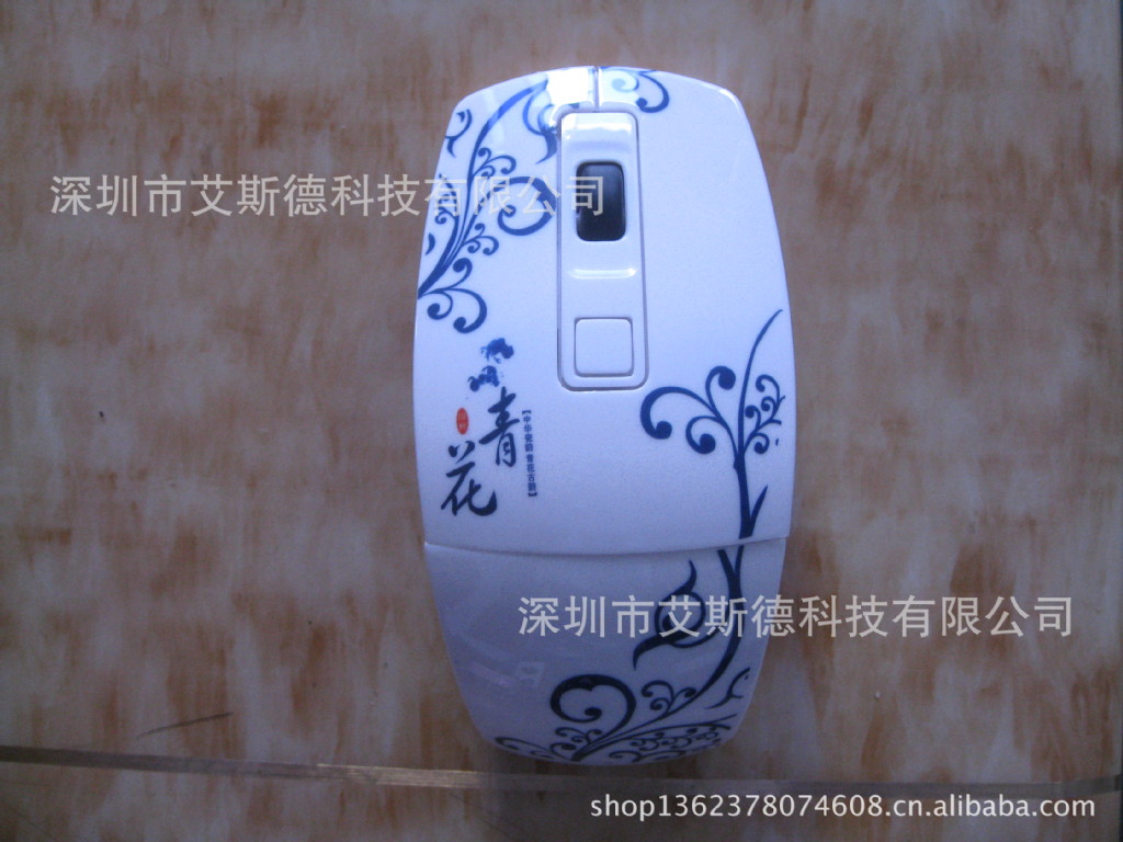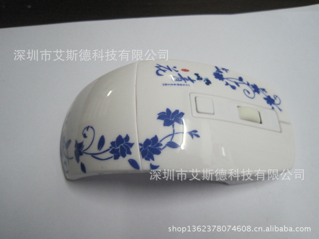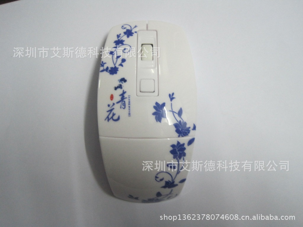 1、青花瓷鼠标外壳表面采用环保UV瓷漆工艺,点缀中国传统花纹,高雅时尚,手感舒适;