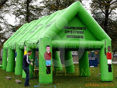 充气广告帐篷,面积大,可在帐篷下面做户外广告宣传活动;可在帐篷上印广告或LOGO。可根据具体要求来定做 。该产品适用于体育,旅游,商业,文化事业,尤其是交易展示活动现场及休闲娱乐,度假场所,相对于一般结构帐篷筑物,充气建筑投入成本低,制作使用便利,外型美观,色彩艳丽,创造了一种全新的空间效果!