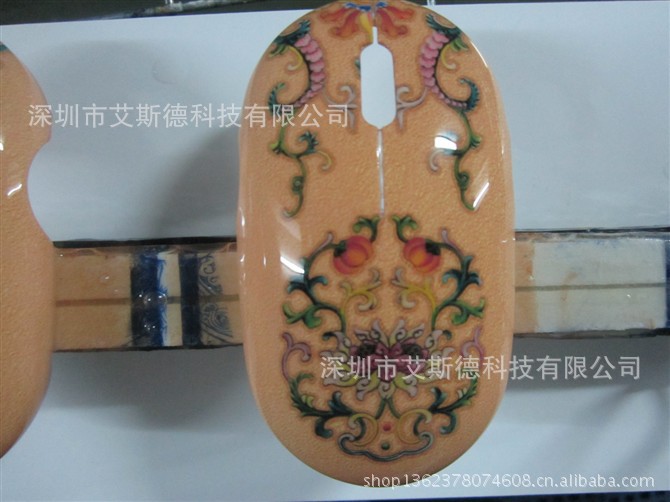 1、青花瓷鼠标外壳表面采用环保UV瓷漆工艺,点缀中国传统花纹,高雅时尚,手感舒适;