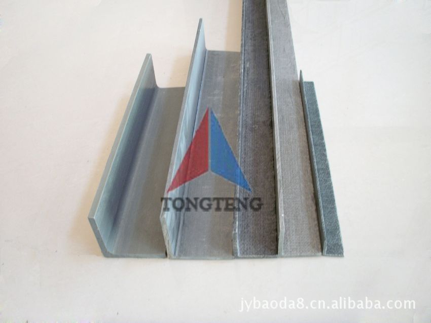 玻璃钢拉挤型材是由玻璃纤维作为增强骨架材料,以热固性树脂作为基体粘接材料而形成的一种复合材料,玻璃纤维连续粗纱使产品具有极高的纵向强度,玻璃纤维毡(连续毡、针织毡等)使产品具备良好的横向强度;热固性树脂基体通常是不饱和聚酯树脂,乙烯基树脂,也可以使用环氧树脂和酚醛树脂,树脂基体使产品具有良好的耐腐蚀性能,不同的树脂使产品可以适用于各种恶劣的腐蚀环境,添加抗紫外线吸收剂和阻燃剂可以使产品具有优异的抗老化性能和不同级别的阻燃性能。