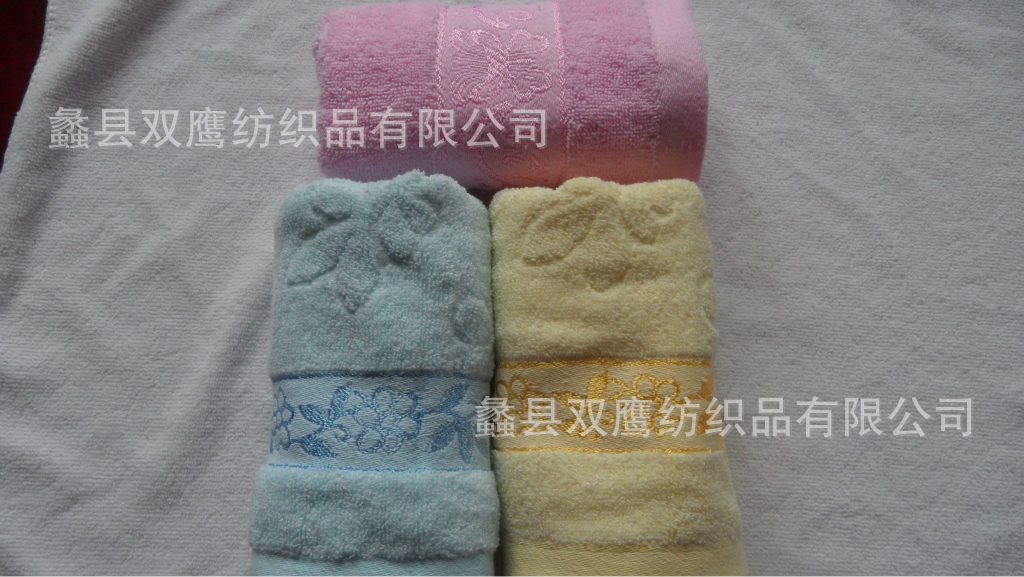 河北双鹰高阳毛巾厂加工定做弱捻14支纯色绣花断档毛巾浴巾¥3.9