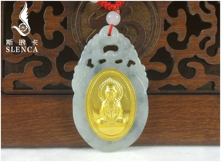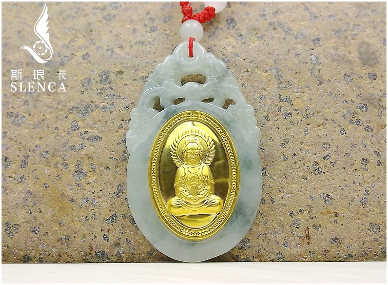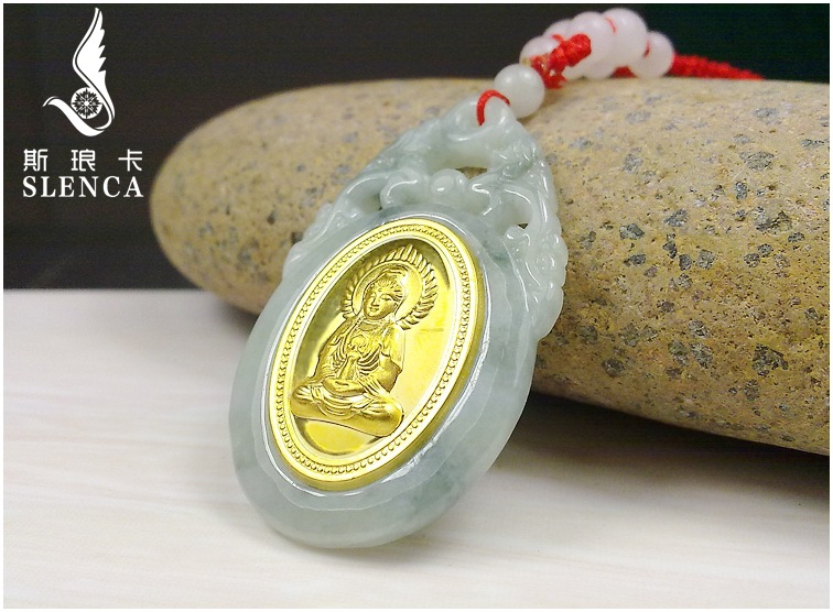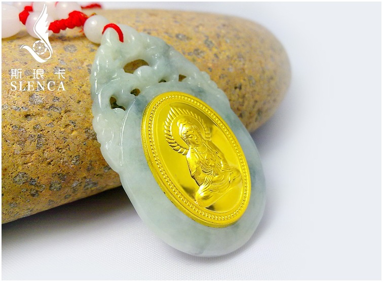 【金镶玉介绍】 自古以来,翡翠一直是最受人们喜爱的珠宝之一。翡翠的绿色与红色象征幸福与兴旺。人们佩戴翡翠饰物,可以防身避祸,逢凶化吉,祛病延年。赠送和佩戴翡翠饰物,预示着对爱情的忠贞。优质翡翠是当今世界价格昂贵的宝石品种,是高档玉料。同时也是高档工艺品“金镶玉”的最好原材料。“金镶玉”产品既倡导时尚,又弘扬传统;玉石与金属的巧妙结合,彰显了“玉”的高贵品质,同时也喻示了中国传统文化中的“金玉良缘”,象征无限美好。产品以优质玉石为原材料,嵌入黄金,经多道工艺精琢而成。