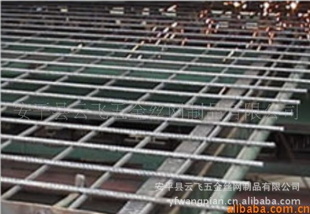 指具有相同或不同直径的纵向和横向分别以一定间距垂直排列,全部交叉点均用电阻点焊在一起而形成的带肋网片。是在工厂中直接焊接成型的网状钢筋制品,以代替手工绷扎钢筋,是新型、高效、节能、强化混凝土结构的建筑用材。按钢筋的类别不同分为热轧(一、二、三级)网、冷拔光面网片、冷轧带肋网。