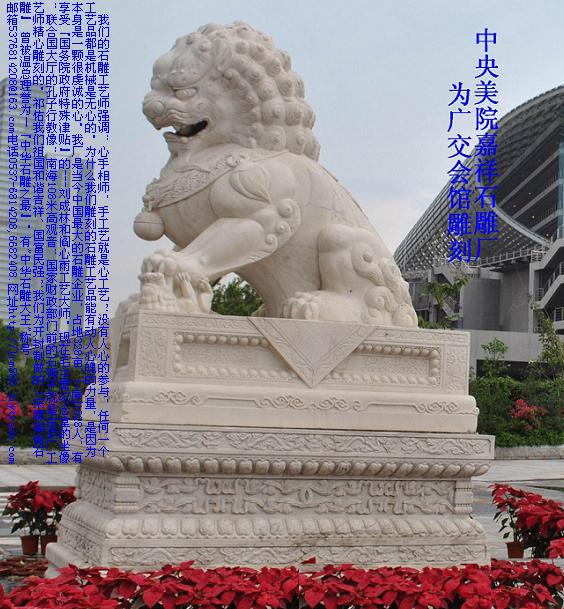 图中显示的是我厂阎心灵工艺师(享受国务院津贴)为广交会馆搬迁精心克隆雕刻的门狮(原来的广交会馆门狮也是由闫心雨工艺师原创),现在已经竣工还未起运,有兴趣的朋友可以来山东我厂考察拍照。
