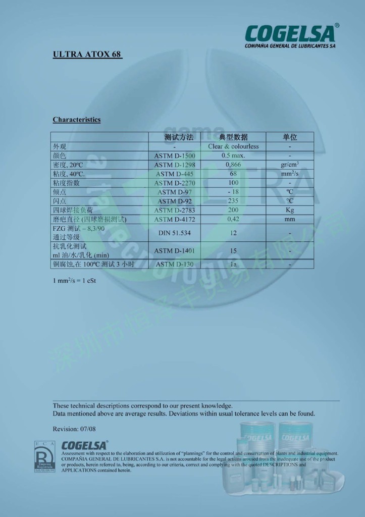 西班牙可赛COGELES ULTRA ATOX 68 食品级多用途润滑油