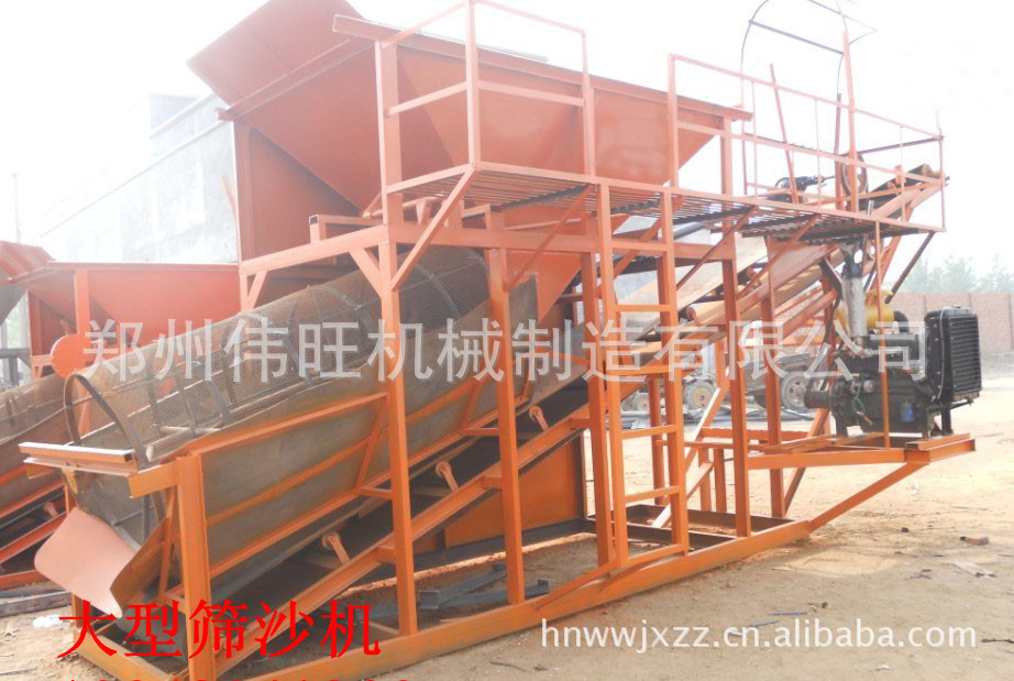 滚筒筛矿用滚筒筛是由六角形滚筒、机架、漏斗、减速器、电动机五个部分成,根据实际生产需要可以进行各种安置方案设计。破碎的石料进入滚筒后, 靠滚筒旋转的离心力及跳汰作用来筛分物料。通过不同网目的筛网逐一筛出。不同规格的石料筛出后经漏斗落入皮带机送至成品料场。一方面随着滚筒转动而被筛选,靠滚筒旋转的离心力及跳汰作用来筛分物料。一方面粒度大的石料沿着滚筒的斜度向前流动,通过不同网目的的筛网逐渐被筛出。不大的石料筛出后落入各自的漏斗,然后由人工运出或自流送往成品堆。
