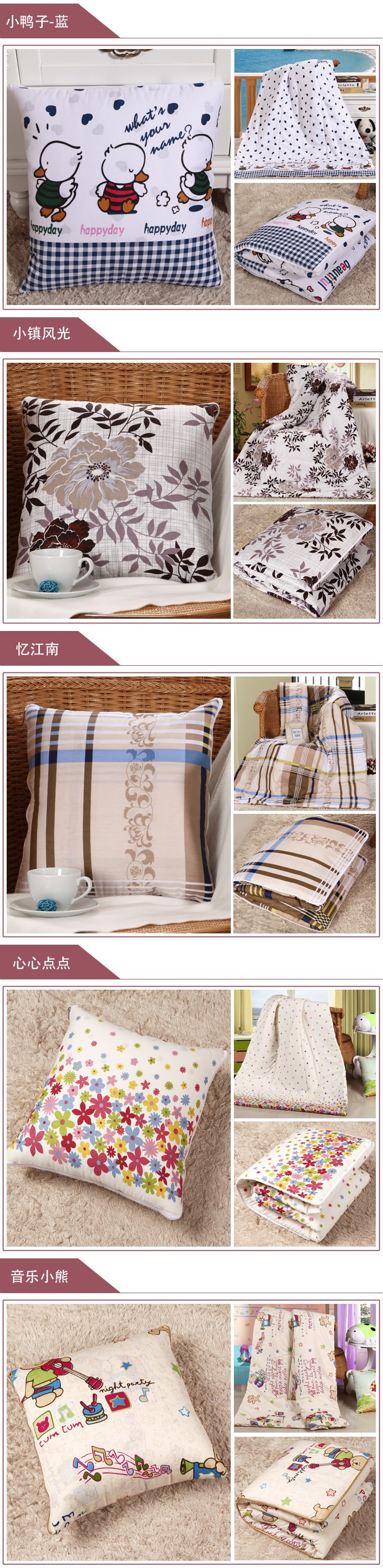 小号:叠起来的靠垫尺寸40*40cm 放开的被 尺寸110*150cm(尺寸误差±5cm)(所有花色均有)