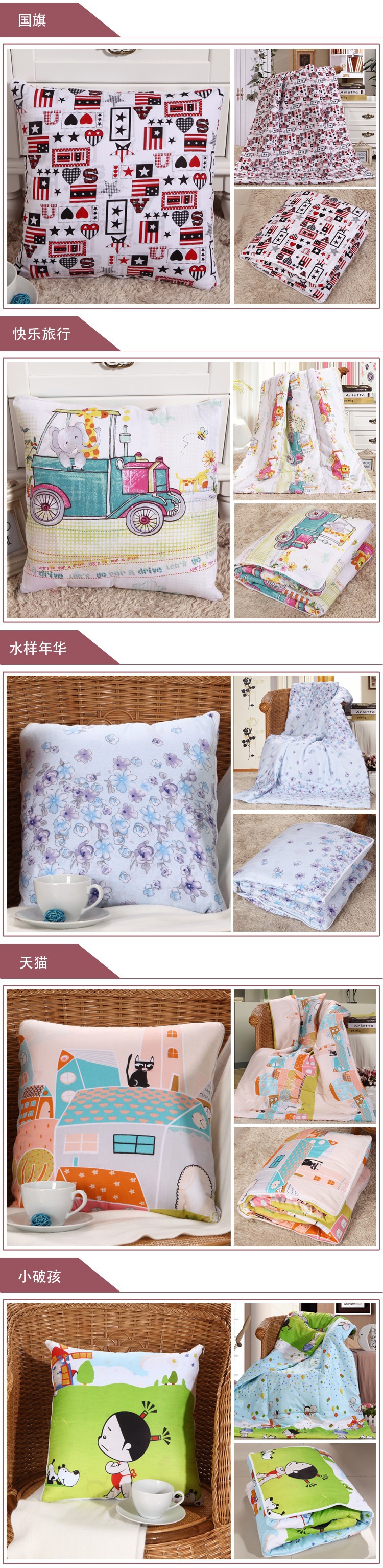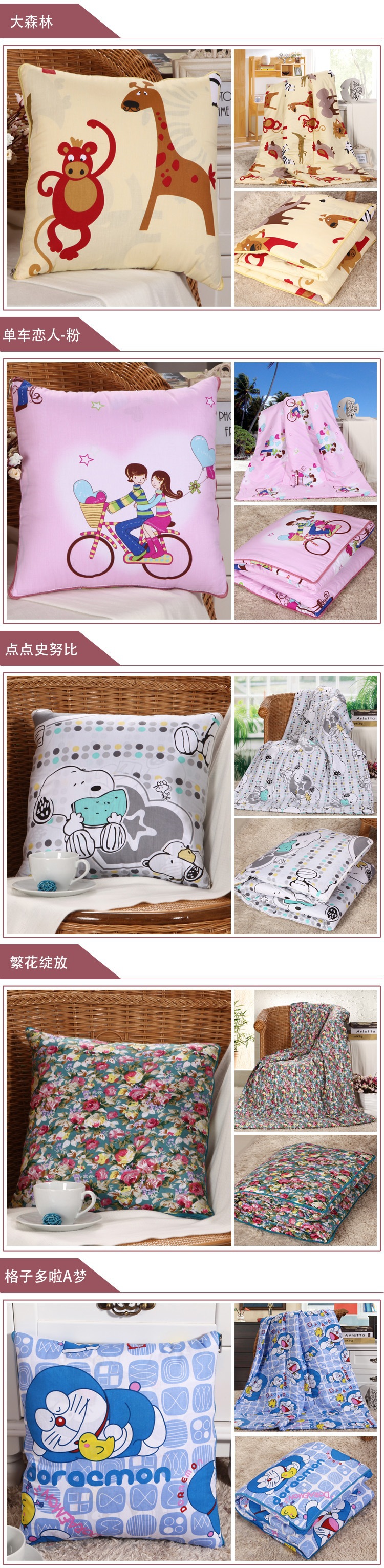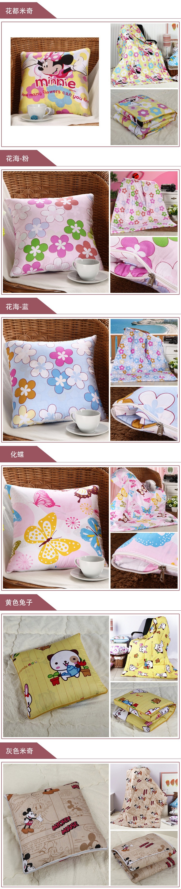大号:叠起来的靠垫尺寸50*50cm 放开的被 尺寸150*200cm(尺寸误差±5cm)(14个花色: