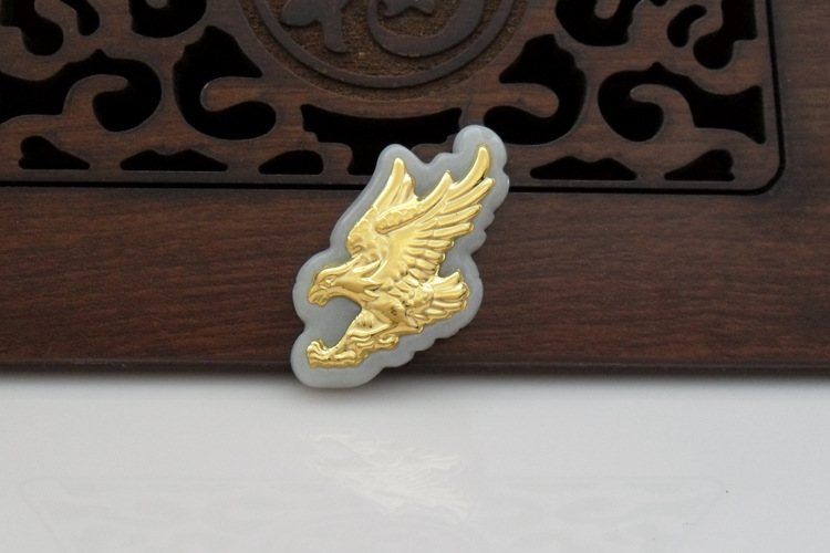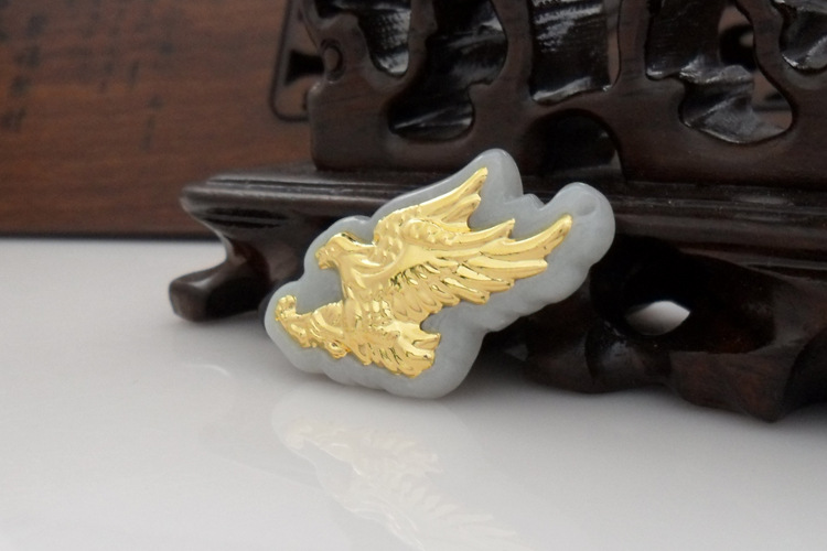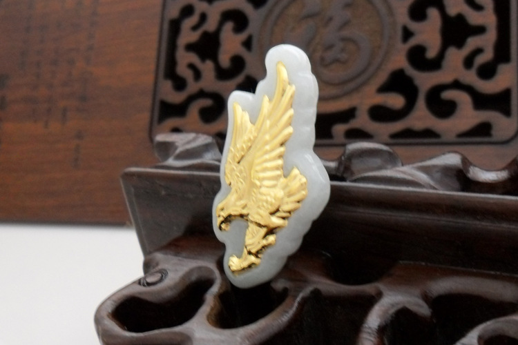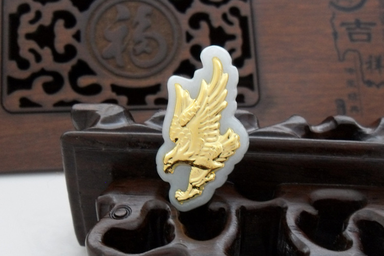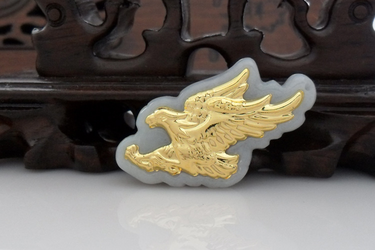 【金镶玉介绍】 自古以来,翡翠一直是最受人们喜爱的珠宝之一。翡翠的绿色与红色象征幸福与兴旺。人们佩戴翡翠饰物,可以防身避祸,逢凶化吉,祛病延年。赠送和佩戴翡翠饰物,预示着对爱情的忠贞。优质翡翠是当今世界价格昂贵的宝石品种,是高档玉料。同时也是高档工艺品“金镶玉”的最好原材料。“金镶玉”产品既倡导时尚,又弘扬传统;玉石与金属的巧妙结合,彰显了“玉”的高贵品质,同时也喻示了中国传统文化中的“金玉良缘”,象征无限美好。产品以优质玉石为原材料,嵌入黄金,经多道工艺精琢而成。