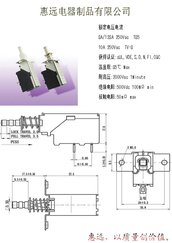 惠远电器制品有限公司是电子电器开关、灯头灯座、接线端子台和插头插座的专业制造商。自2002年于广东佛山成立制造配件事业部以来,公司始终坚持立诚信、重质量、共发展的理念发展事业。