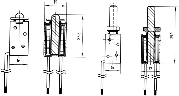HCNE1-YH 电动车直流电磁铁用途该电磁铁作为电动车用电磁铁,二件为一组,作为电动车的控制执行元件。性能工作电压:48V,64VDC行程:10mm外形及安装尺寸
