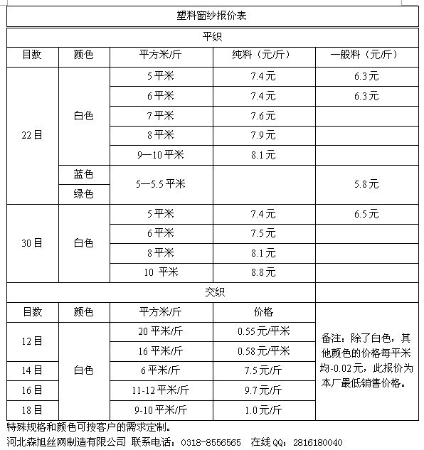 平织塑料窗纱:单根经线、单根纬线,塑料丝比较粗,网格均匀、美观大方,是玻璃纤维窗纱的替代产品