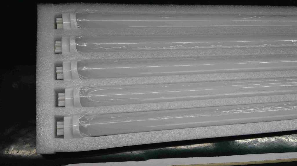 4、材料方便运输。市场上的LED日光灯管多采用透明玻璃管,这样可以增加亮度,但光色刺眼,特别不利于运输,我公司生产的LED日光灯管采用高档的PC塑料,光色柔和,运输方便。